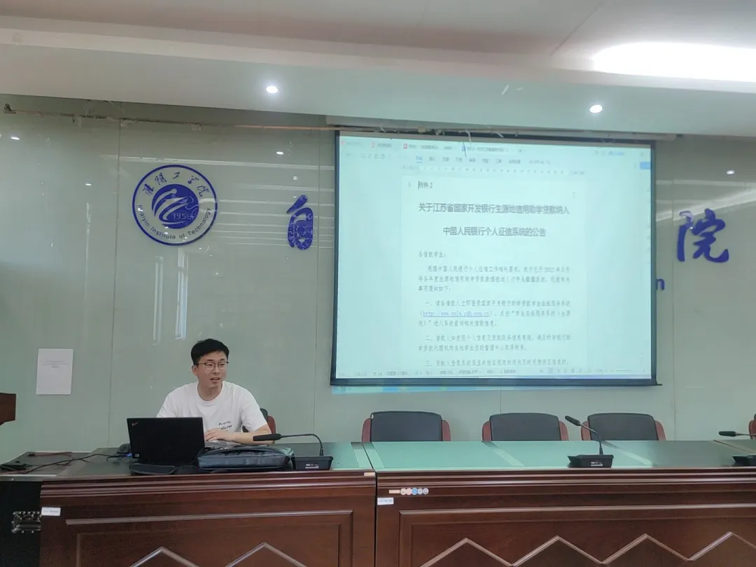 活动伊始,罗强向同学们介绍了国家助学贷款的相关政策,以及助学贷款注意事项。随后,其重点针对2024届毕业生,强调了2024年度生源地助学贷款学生毕业确认具体步骤,讲解了毕业还款的流程、还款方式、还款注意事项、贷款违约后果等内容。最后,罗强提出大学生要诚信还款、及时还款,提升诚信和社会征信意识。
