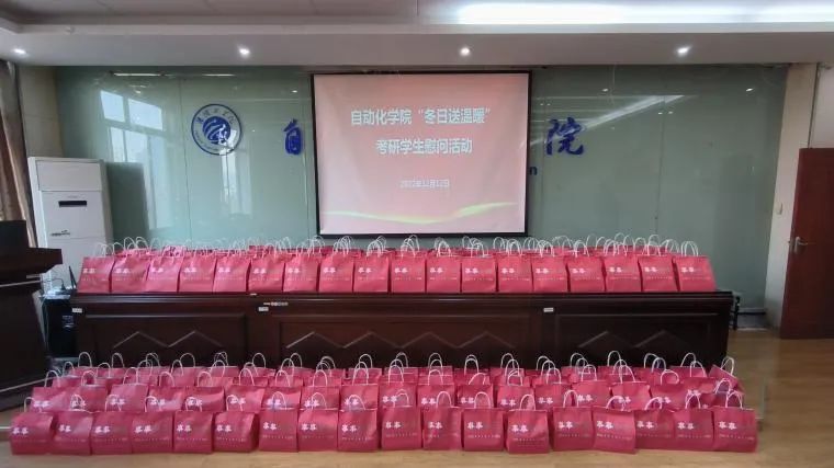 漫漫考研路,殷殷师生情。自动化学院心系关怀考研学生,高度重视考研工作。一年来,院领导和老师们通过走访寝室、谈心谈话、开展讲座、线上答疑等多种方式动员、帮助学生树立考研目标、坚定考研信心、解答考研疑惑、舒缓心理压力。当下,考试在即,院领导积极筹备购买物资,为考研学子精心准备“事事如意”加油包,包括橙子、大糕、饼干、金榜题名笔等物资,祝福望考研学子“心想事成”、“门门高中”。备考学子们倍受振奋,纷纷表示感谢学院领导老师的用心和关爱,一定会不负众望,全力以赴,以最好的状态迎接考试,以优秀的成绩回报学院的付出。