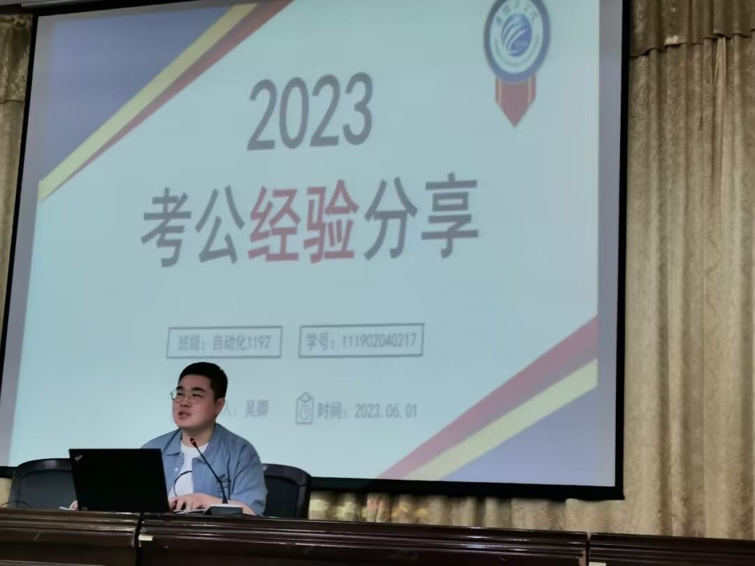 为充分发挥自动化学院优秀学子引领作用,进一步加强学院学子对考研考公的认识,6月1日上午,自动化学院于图书馆报告厅举行2020级考研考公经验分享会。2020级辅导员刘琪出席本次会议,5位成功上岸的2019级学长学姐代表作交流发言。
