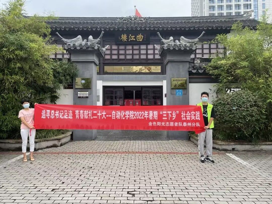 为用好用活地方红色资源,引导广大青年学生厚植爱党爱国情怀,近日,自动化学院金色阳光志愿者队“红色江苏行,青春‘智’闪光”暑期实践团分别前往连云港市革命纪念馆、宿迁市爱园烈士陵园、泰州市曲江楼等江苏省红色教育基地开展2022年暑期“三下乡”社会实践活动。