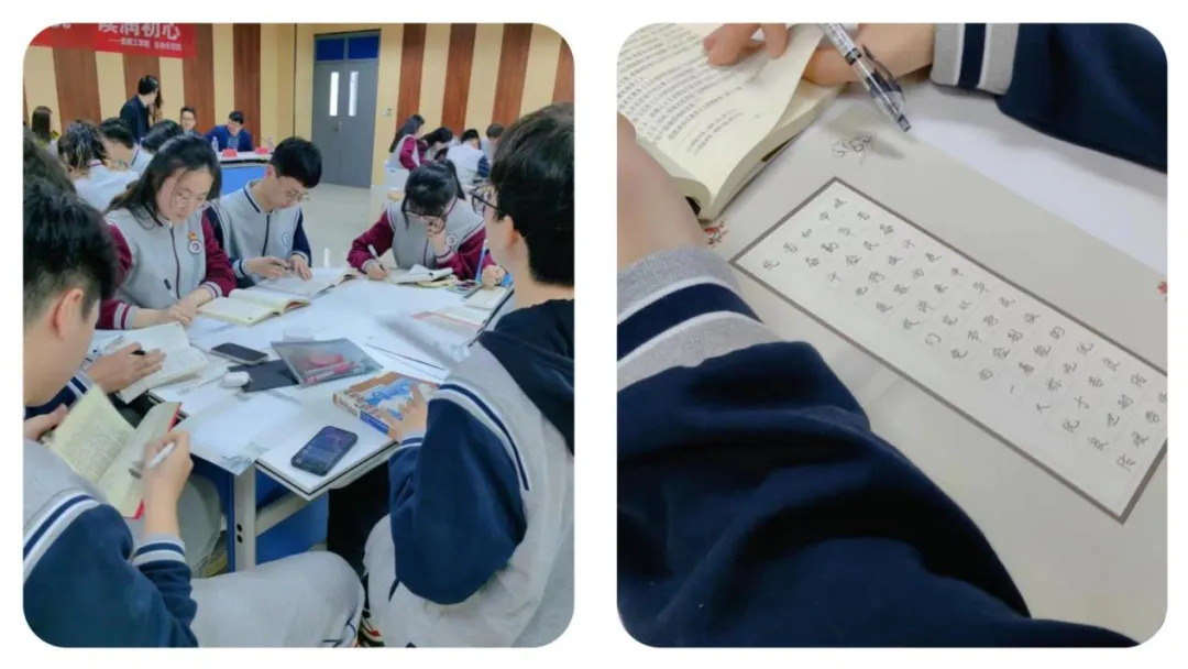 经典摘抄环节,同学们在阅读的基础上,摘抄书中关于周恩来总理的名言警句、家国情怀、救国真理,用简单传统的方式,一笔一划书写最美中国字,于文字书写间体悟周恩来总理强烈的救国志气和浓烈的报国情怀。
