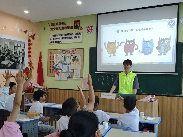 活动中,支部党员围绕“红色故事与爱国教育”“情绪朋友与未来信箱”两大主题精心策划,以儿童易于接受的形式展开宣讲。在红色故事环节,党员通过视频动画播放和情景模仿,生动讲述《小英雄雨来》《鸡毛信》等经典故事,当讲到雨来宁死不屈保护交通员的片段时,孩子们深受感染并主动分享爱国故事;情绪管理环节,党员通过“情绪猜猜乐”游戏引导儿童识别情绪,并用绘画表达内心;“未来信箱”活动中,孩子们认真书写个人期许、祖国祝福及心情秘密,郑重投递至信箱,现场氛围热烈。