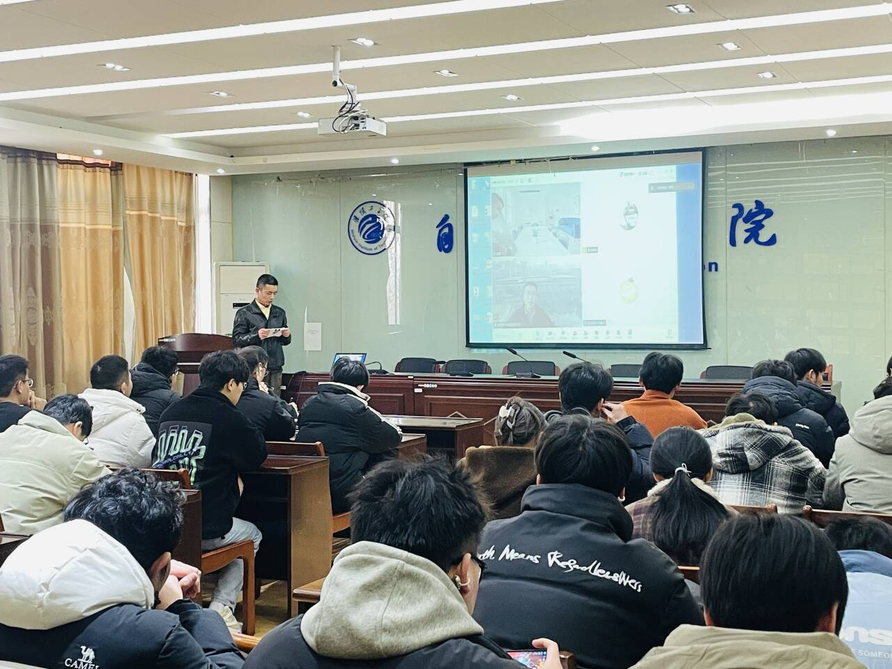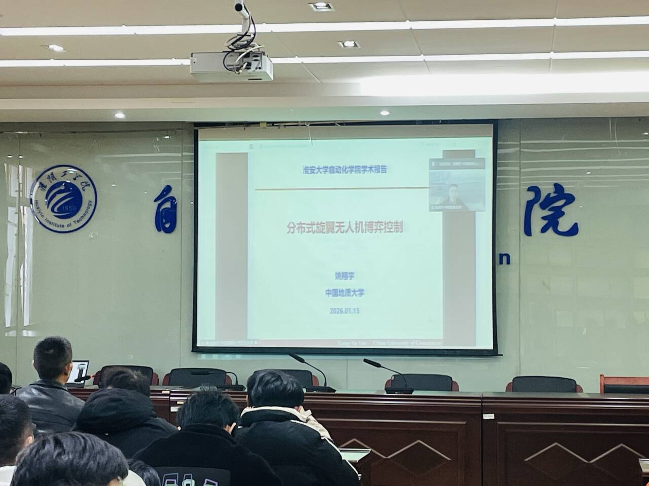 2026年1月15日下午15:00,中国地质大学姚翔宇教授应邀为我校自动化学院师生作题为《分布式旋翼无人机系统的博弈控制研究》的学术报告。报告采取线上线下相结合的形式开展,学院部分青年教师、研究生及本科生参加了本次学术活动,报告由自动化学院院长赵环宇教授主持。